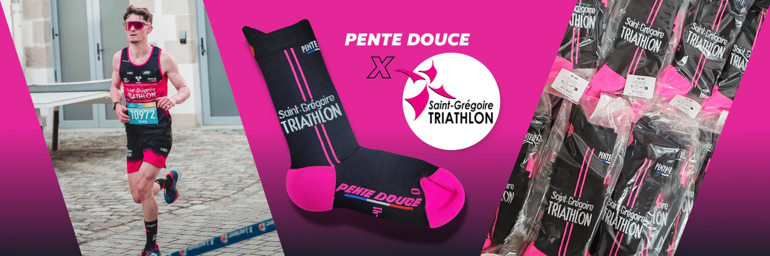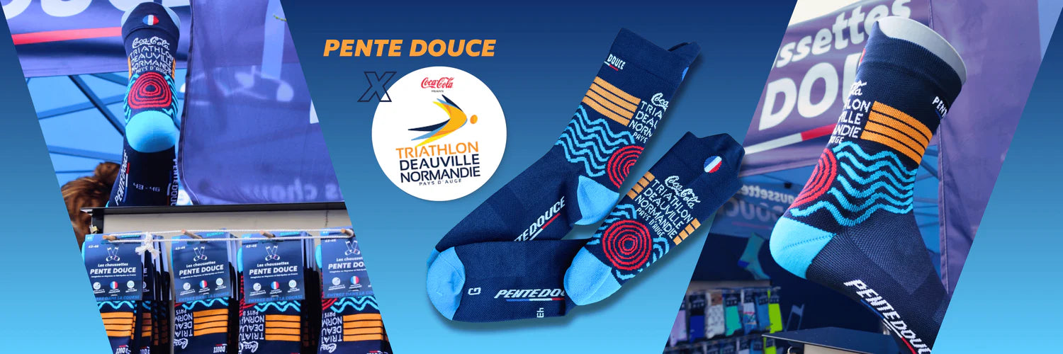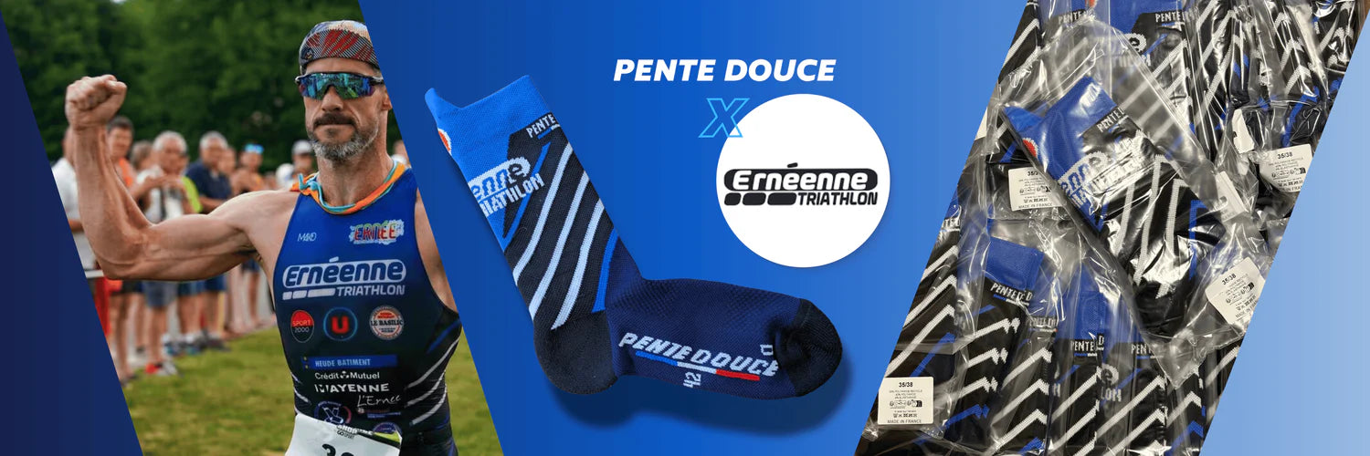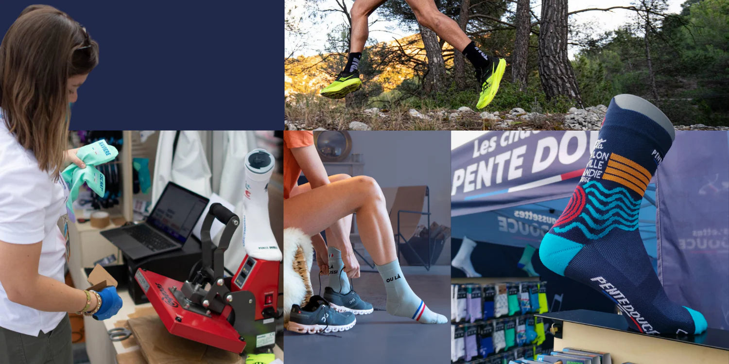 Chez Pente Douce, nous t'accompagnons dans la création de chaussettes à votre image, confortables, techniques et fabriquées en France. Grâce à nos deux méthodes de personnalisation — le tricotage ou la sublimation — tu choisis le rendu qui correspond le mieux à ton projet.