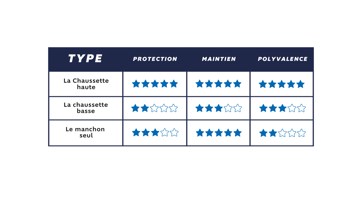 4- Comparatif : chaussettes hautes vs chaussettes basses vs manchons