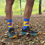 Les plus : ✅ Fibres recyclées & fabrication française ✅ Respirantes, légères et anti-frottement ✅ Renforts ciblés, anti-ampoules ✅ Design vibrant inspiré des reliefs réunionnais