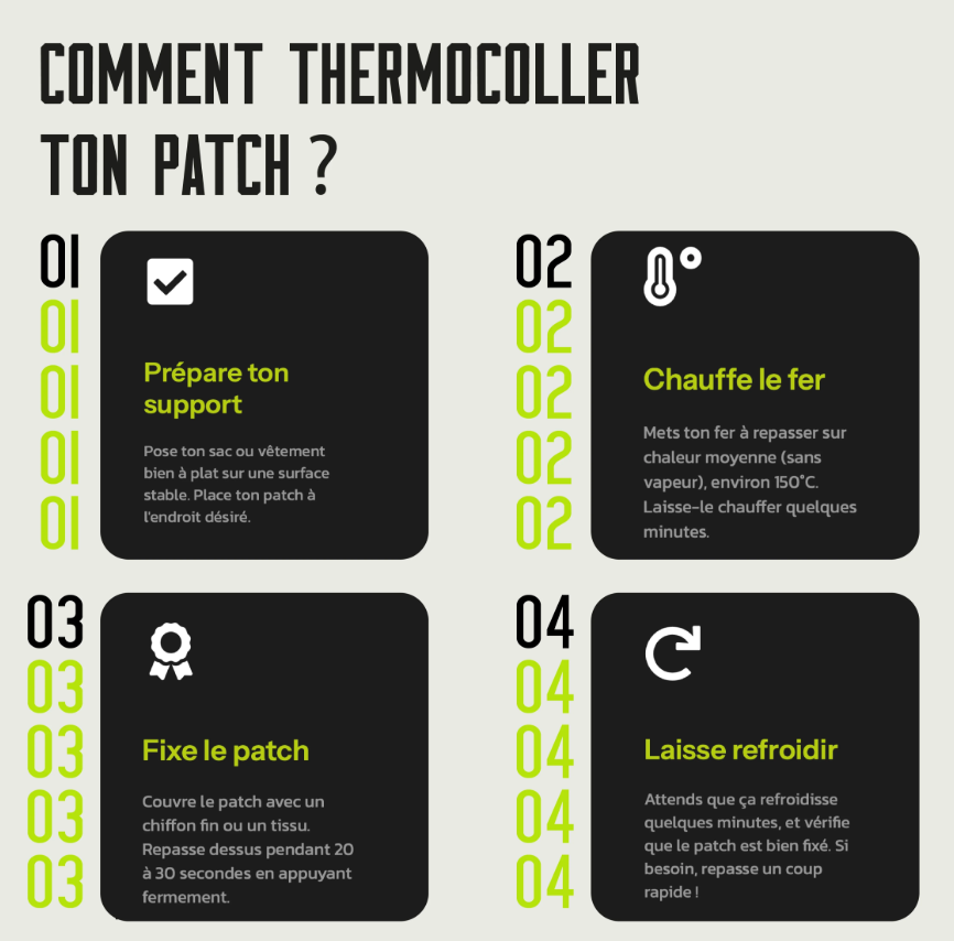 La solution idéale pour personnaliser votre équipement rapidement et facilement. Avec nos écussons thermocollants, donnez un look unique à vos sac, vêtements ou accessoires.